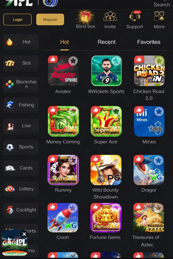 9IPL Game ka interface dark theme ke saath premium look deta hai. Icons high-quality hain aur animations smooth hain, jo gaming experience ko aur bhi engaging bana dete hain. Home screen par popular aur trending games clearly dikhte hain, jisse users ko turant idea mil jaata hai ki kaun-se games zyada pasand kiye ja rahe hain.